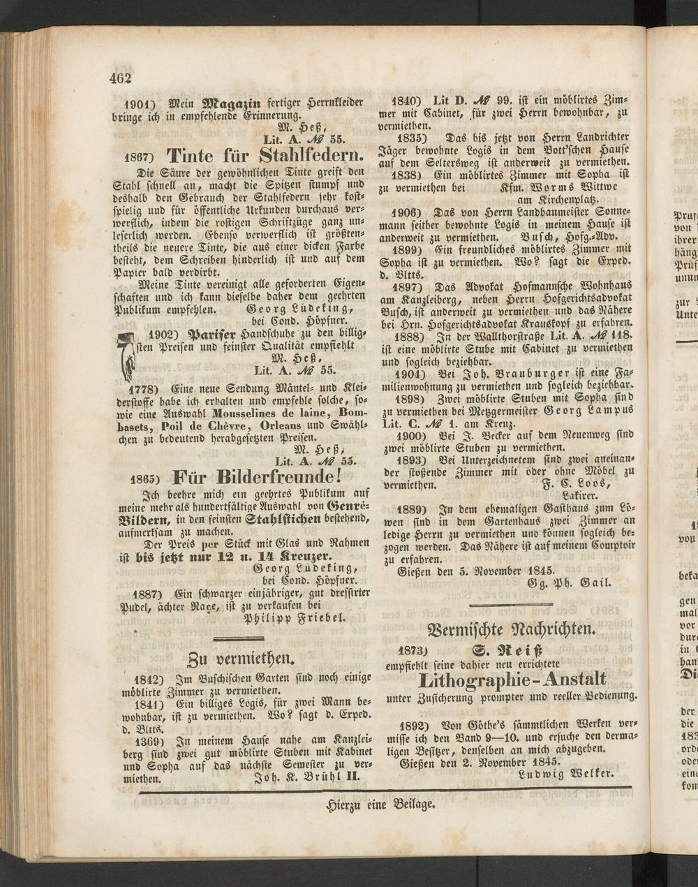 Gießen den 2. November 1845.