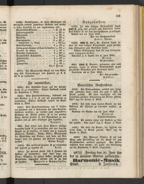 1163) 209 fl. 37'4 kr Kapital liegen soeben bei dem hiesigen Kirchenfonds gegen gerichtliche Obligation zum Ausleihen bereit.