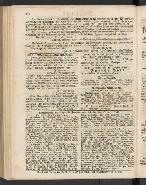 . - Agent der Berlinischen Lebens-Versicherungs-Gesellschaft.
