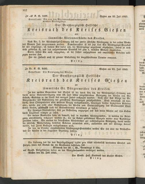 Zu Nr. K. G. 9495. Gießen am 23. Juli 1845,