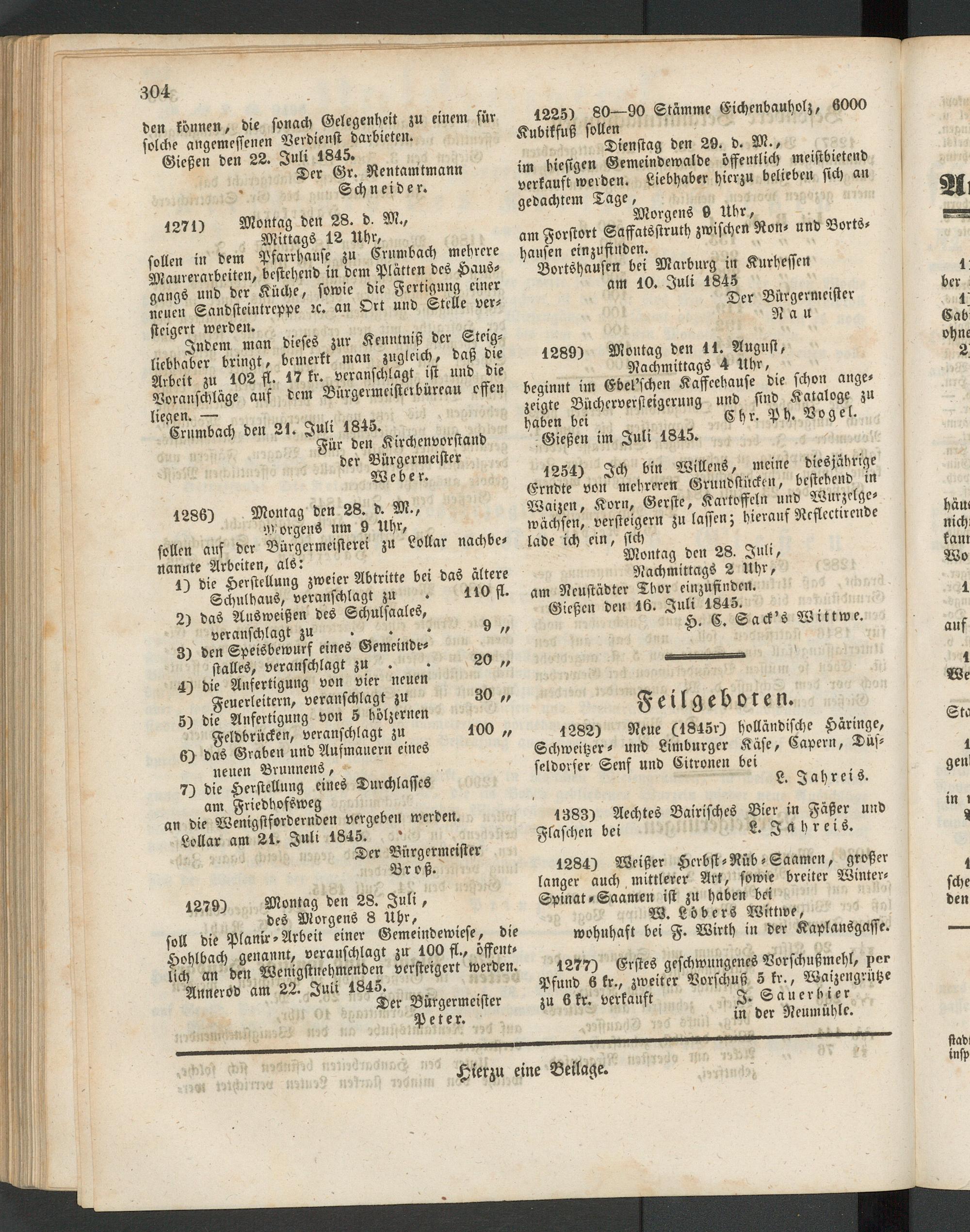 Gießen im Zuli 1845.