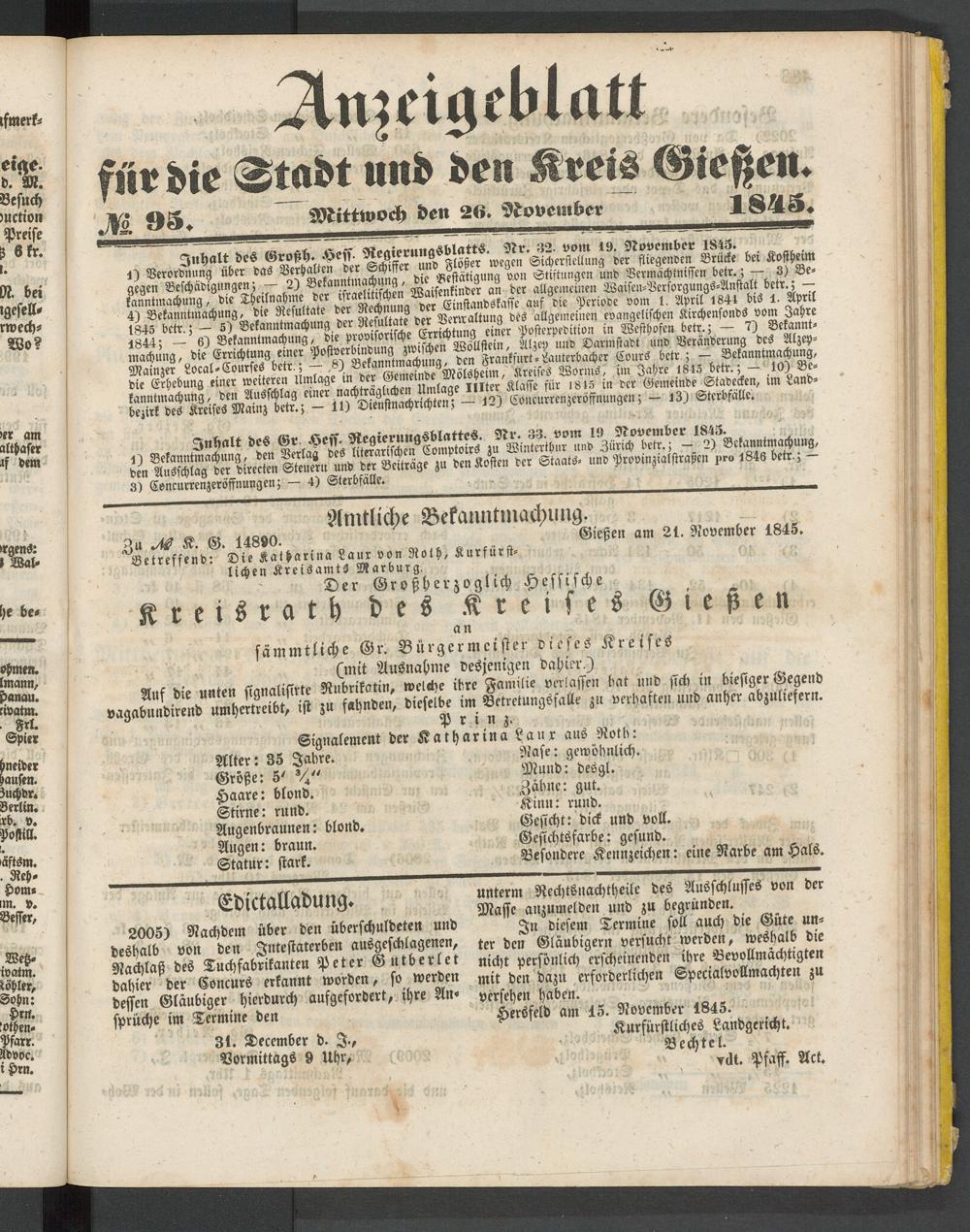 o M « ß, 14890. Gießen am 21. November 1845.