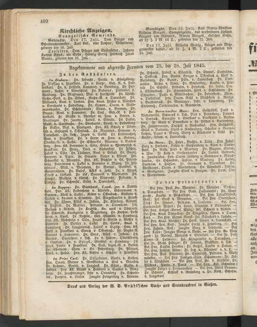 Einhorn: Hr. Lebrecht, Partie, v. Königsberg. Fr. Messing v. Frankfurt. Hr. v. Kurtze, Geh. R. v. Halberstadt. Hr. v. Hellfeld, Kammerh. v. Bernbnrg. Hr'Hermann, Archit. v. Altenschlirf. Hr. Buderus, Hüttenbes. v. Weilburg. Hr. Mutzbauer, Mal. v. Herschfeld. Hr. Uhrich, Rechu.-Prob. u. Hr. Elbert, Rechn.-R v. Darmstadt. Hr. Williams, Reut. v. London. Hrn. Stud. Fischer v. München u. Bernhardt v. Heidelberg. Hr. Simon, Oecon. v. Wald- manöhausen. Hr. Schünemann, Senat, v. Bremen. Hr. Braun, Rent. v. Hannover. Hr. Carl, Geh.-R. v Halberstadt. Fr Gräfin v. Werther m. Fam. u. Bedien, v. Reutlingen. Hr. Jacoby, Fabrik, v. Eltville. Hr. Haller, Musik, v. Carlsruhe. Hr. Eberhardt, Apoth. v. Heidelberg. Hr Wickler, Mal v. Stuttgart. Hrn. Kfl. Schulz v Elberfeld u. Schlupell v. Offenbach. Hr Mczenius, Privatm v. Darmstadt. Hr. Loch, Ingen, v. Cassel. Hr. Korbmacher, Reut, v Frankfurt. Hr. v Heppe m Fam. u. Bedien., Oberfin.-R. v. Cassel. Hr Schmeffel, Pharmac. v. Battenberg. Hrn. Äst. Hormmer v. Cöln, Stern u. Wunderlich v. Frankmrt. Hr. Prinz, Dort. v. Biedenkopf. Hr Fischer, Fabrik v. Cöln. Hr. Thillmer, Rent. v. Erfurt. Hr. Guörr, Propriet. v. Paris. Fr. Staatsr. Bauer v. Altona. Frl. Schmeffel v. Wimpfen. Hrn. Kfl. Büchler v. St. Petersburg , Heinemann v. Cassel u. Rimmler v. Mainz. Hr. Hildebrand, Müll. v. Weinheim. Hr. Werner, Gutsbes. v. Germersheim. Hr. Buseck, Affess v. Zelle. Hr. v Ehnes, Obrist a. Liefland. Hr Eck, Baumeist. v. Wiesbaden. Hr. Küntzcl, Maschin. v. Lüttich. Hr. Wipprecht, Privatm. v. Danzig. Hr. Schwefel, Bildh. v. Darmstadt.