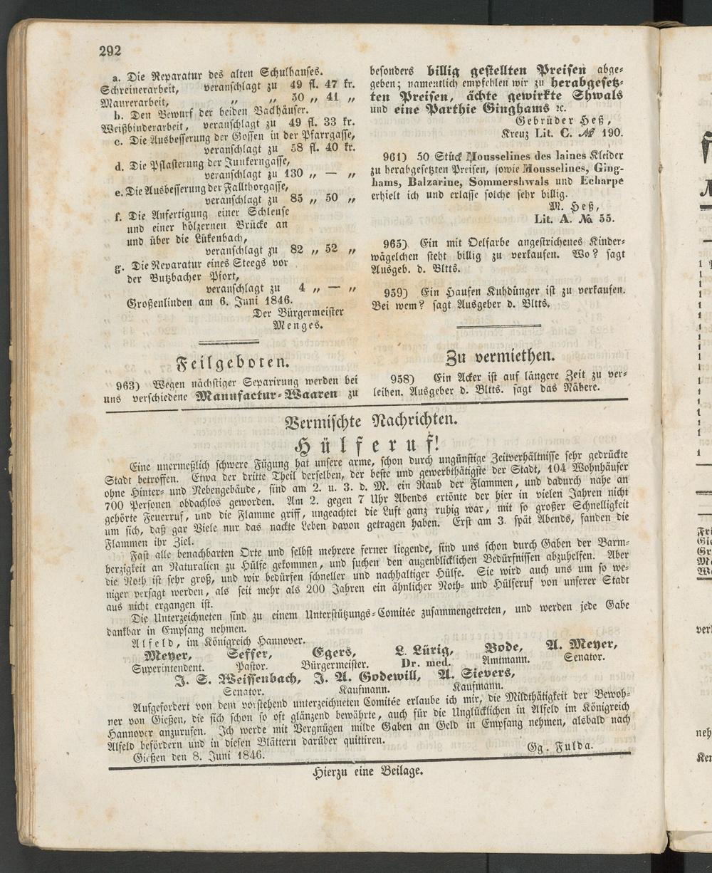 Gießen den 8. Juni 1846. .. ----------