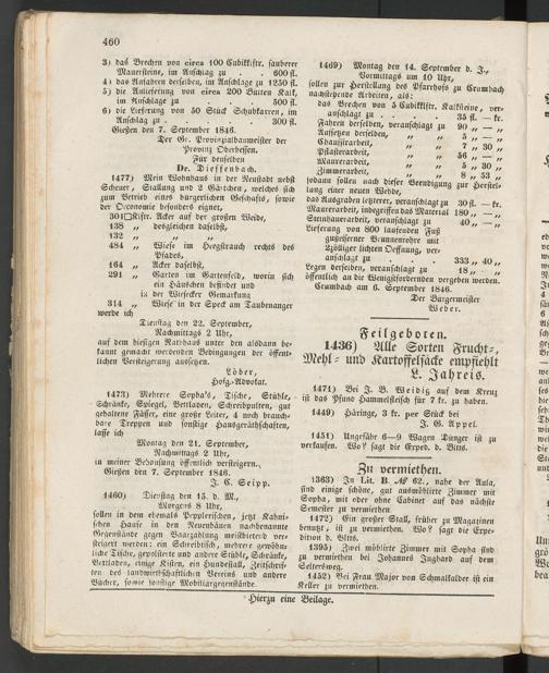 1477) Mein Wohnhaus in der Neustadt nebst Scheuer, Stallung und 2 Gärtchen, welches sich zum Betrieb eines bürgerlichen Geschäfts, sowie der Oeconomie besonders eigner,