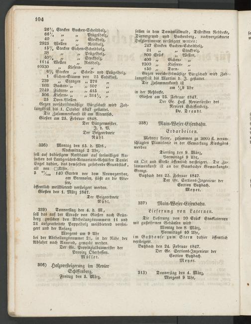 339) Donnerstag den 4. d. M., soll das auf der Straße von Gießen nach Grün- berg zwischen den Abtheilungsnummern 11 und 21 ausgearbeitete Pappelholz meistbietend versteigert und der Anfang