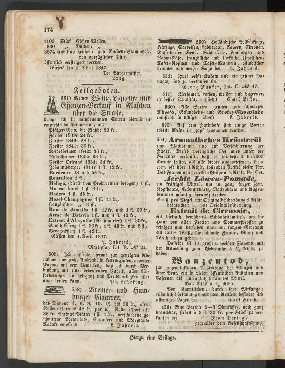 Wieseck den 1. April 1847.