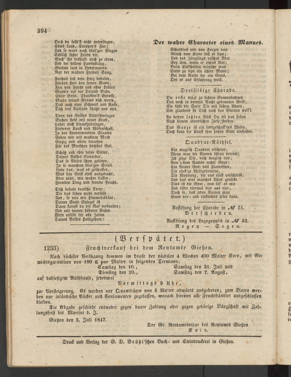 1233) Fruchtverkaus bei dem Rentamte Gießen.
