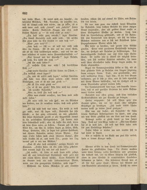 Gegen die Commerzienräthin stellte er sich, als ob seine glühende Liebe zu Rosalien eine längere Zögerung kaum, ertragen könne. Diese, eine gewöhnliche, aber recht verständige Frau, sagte ihm, es sey kein Grund 'vorhanden, gar so sehr zu eilen, und sie habe eigentlich mit ihrem Manne beschlossen, daß die Hochzeit erst in einem Vierteljahre gefeiert werden solle.