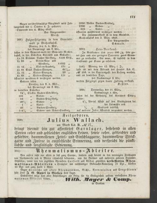 369) Donnerstag den 11. März, Nachmittags 1 Uhr, sollen bei der Wohnung des Bleichers Schürz dahier: