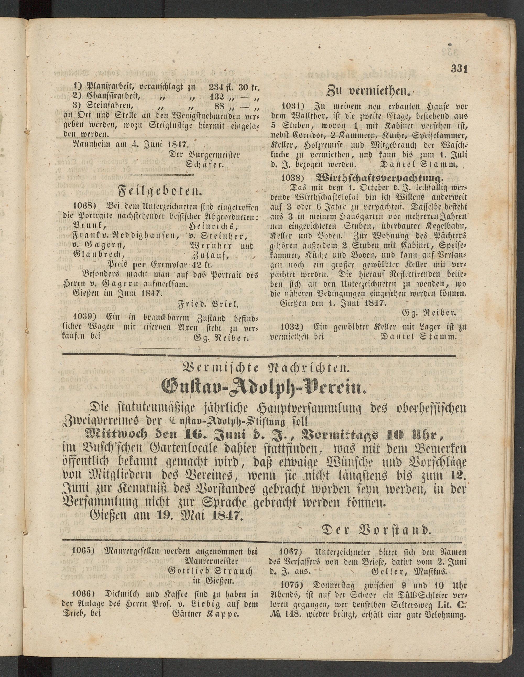 1068) Bei dem Unterzeichneten sind eingetroffen die Portraite nachstehender bessischer Abgeordneten: