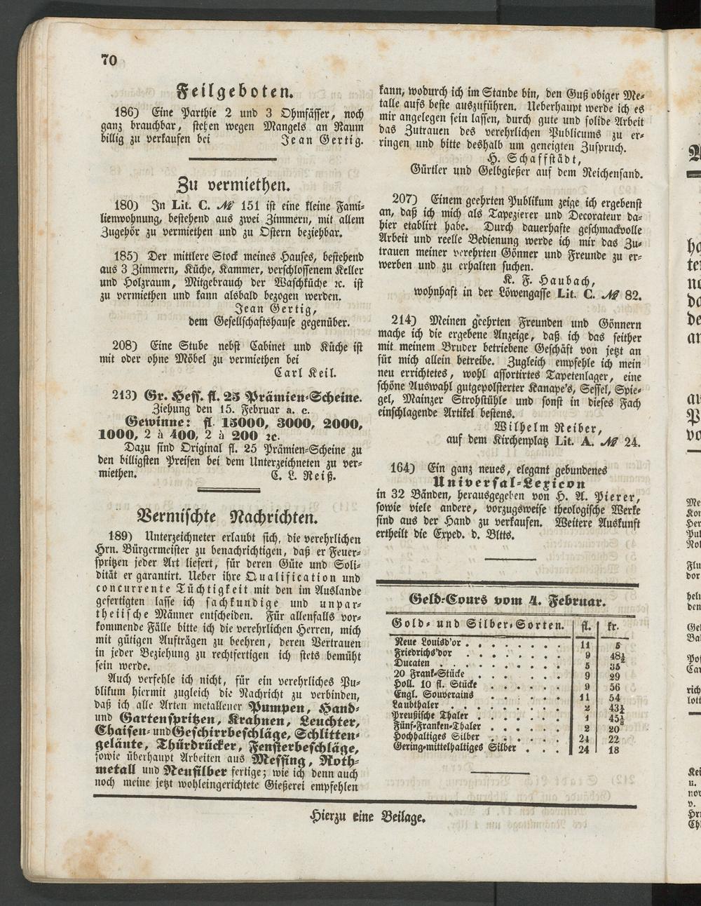 Dazu sind Original fl. 25 Prämien-Scheine zu den billigsten Preisen bei dem Unterzeichneten zu vermiethen. C. L. Reiß.
