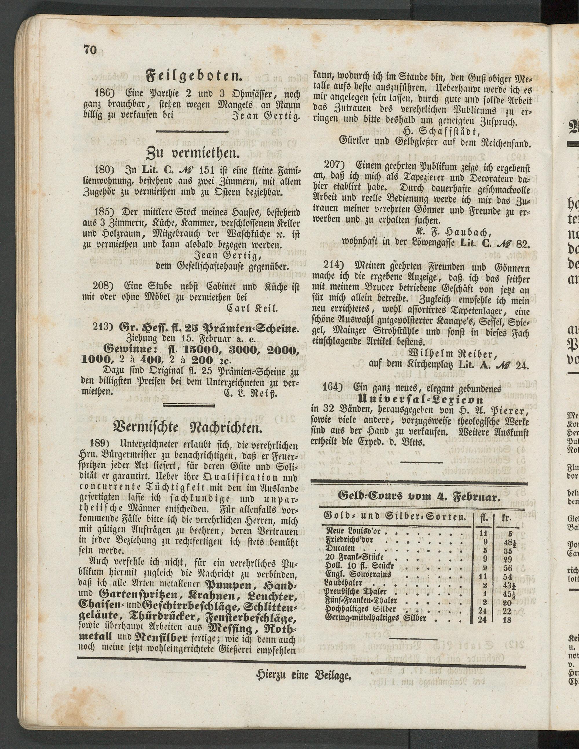 in 32 Bänden, herausgegeben von H. A. Pierer, sowie viele andere, vorzugsweise theologische Werke sind aus der Hand zu verkaufen. Weitere Auskunft ertheilt die Erped. d. Bltts.