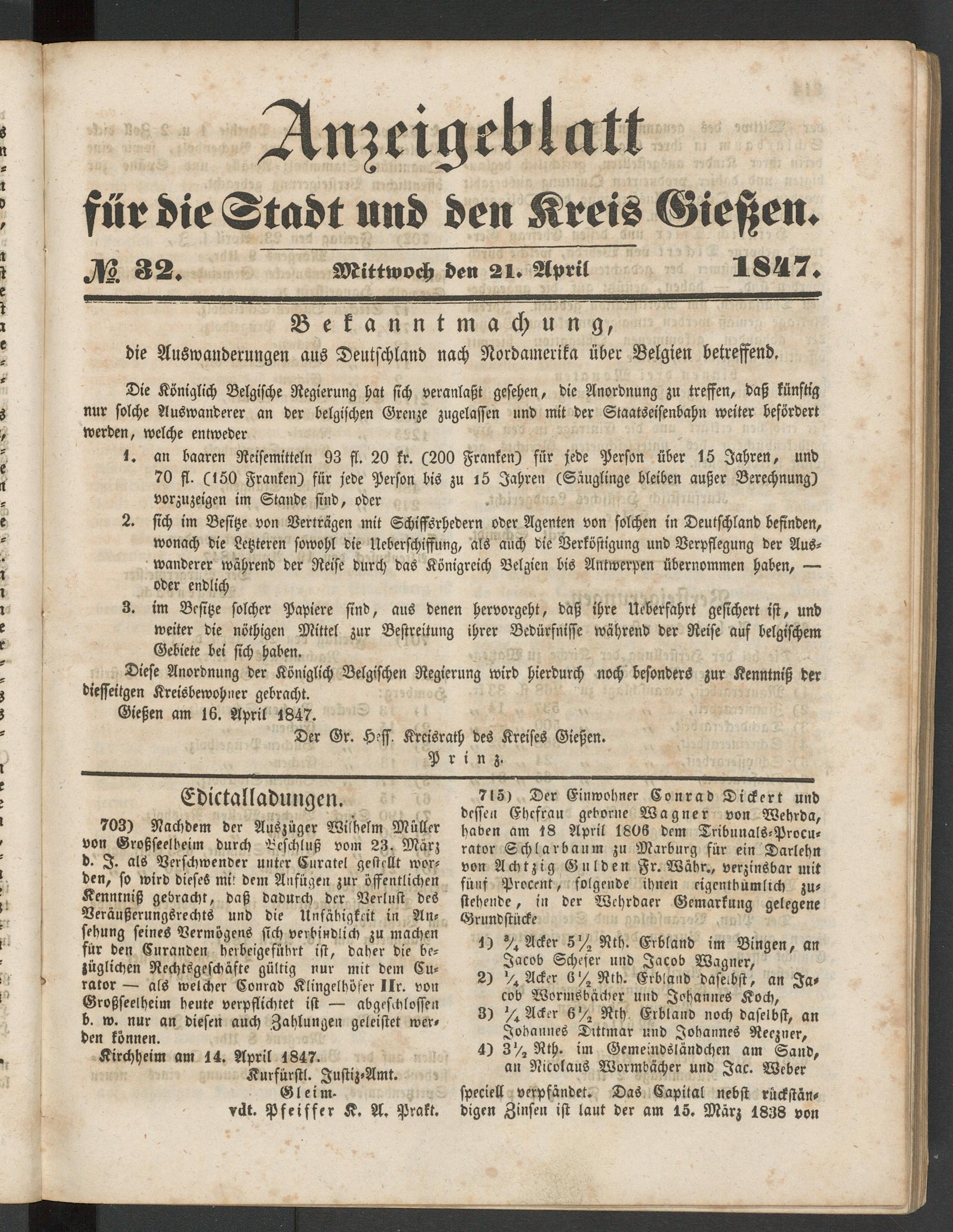 Gießen am 16. April 1847.