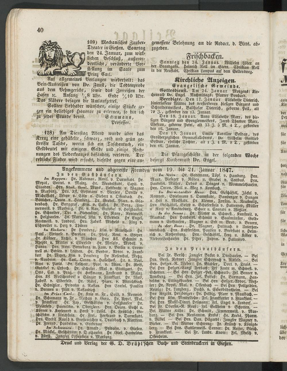 Bei Fr. Bersch: Jungfer Becker v. Dreihausen. — Bei Hrn. Gerh. Nodner: Jungfer Schoppach v. Alsfeld. — Bei Hrn. Hofger.-R. Weber: Hr. Stadler, Doct. v. Trais. — Bei Hrn Hofger.-Canzl Forbach: Frl Fendt m. Schwest. v. Schotten. — Bei Hrn Hofger-Ped. Schwalb: Frl. Benner v. Arnsberg. - Bei Hrn. Jos. Beifuß: Hr. Bärmann, Han- delsm. v. Ettingshausen. — Bei Hrn Hofger.-Advoc. Wetz- ler: Hr. Appel, Mal. v. Offenbach — Bei Hrn Polizeidien. Reinig: Hr. Lanzberg, Buchb. v. Erbesbüdesheim. — Bei Hrn Registr. Herzberger.- Hr. Helbig, Pfarr v. Maulbach.— Bei Hrn Kfm. Mendelsohn: Frl. Frankfurter v. Frankfurt. — Bei Hrn. Musik-Direct. Hofmann: Frl. Engel v. Londorf. — Bei Fr. Oberfin.-R. Reuß: Frl. Sellheim v Schotten. — Bei Wittwe Kühn: Hr. Schmitt, Zimmermeist. v. Marburg. — Bei Hrn. Rentamtm. Krebs: Hr. Krebs, Pharm. v. Vilbel — Bei Hrn. Dan. Hilgardt: Jungfer Wagner v. Bieber. — Bei Wittwe Schweng: Fr. Kränch v. Königsberg. — Bei Hrn. Sattlcrmeist. Senner: Hr. Reiser, Bleich, v. Frankfurt. — Bei Fr. Landr. Knorr: Frl. Musch v. Offenheim.