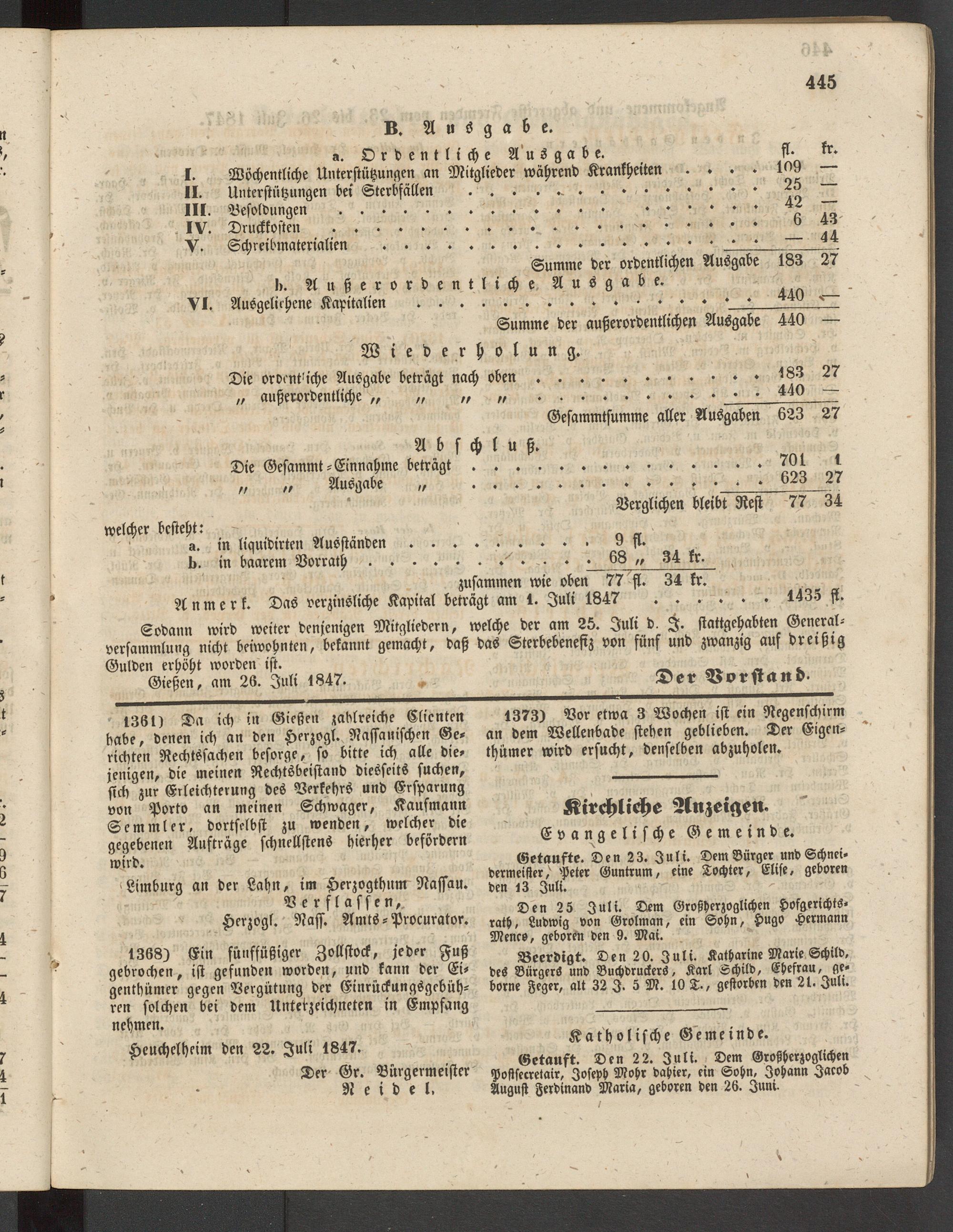 Anmerk. Das verzinsliche Kapital beträgt am 1. Juli 1847 . . . . . . 143-, fi.