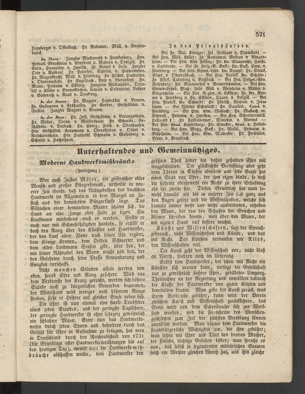 In der Sonne: Hr. Wagner, Handelsm v. Beuern. Fr. Goldmann v. Ershausen. Hr. Gerber, Geschäftsm. v. Goßlar. Jungfer Wagner v. Beuern.