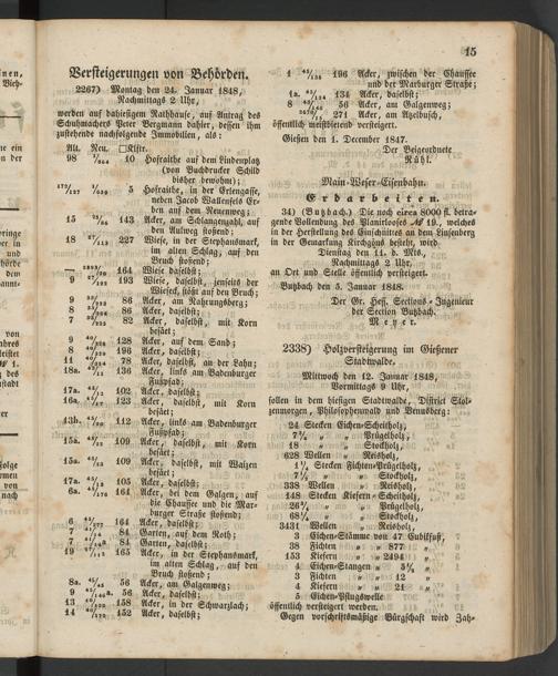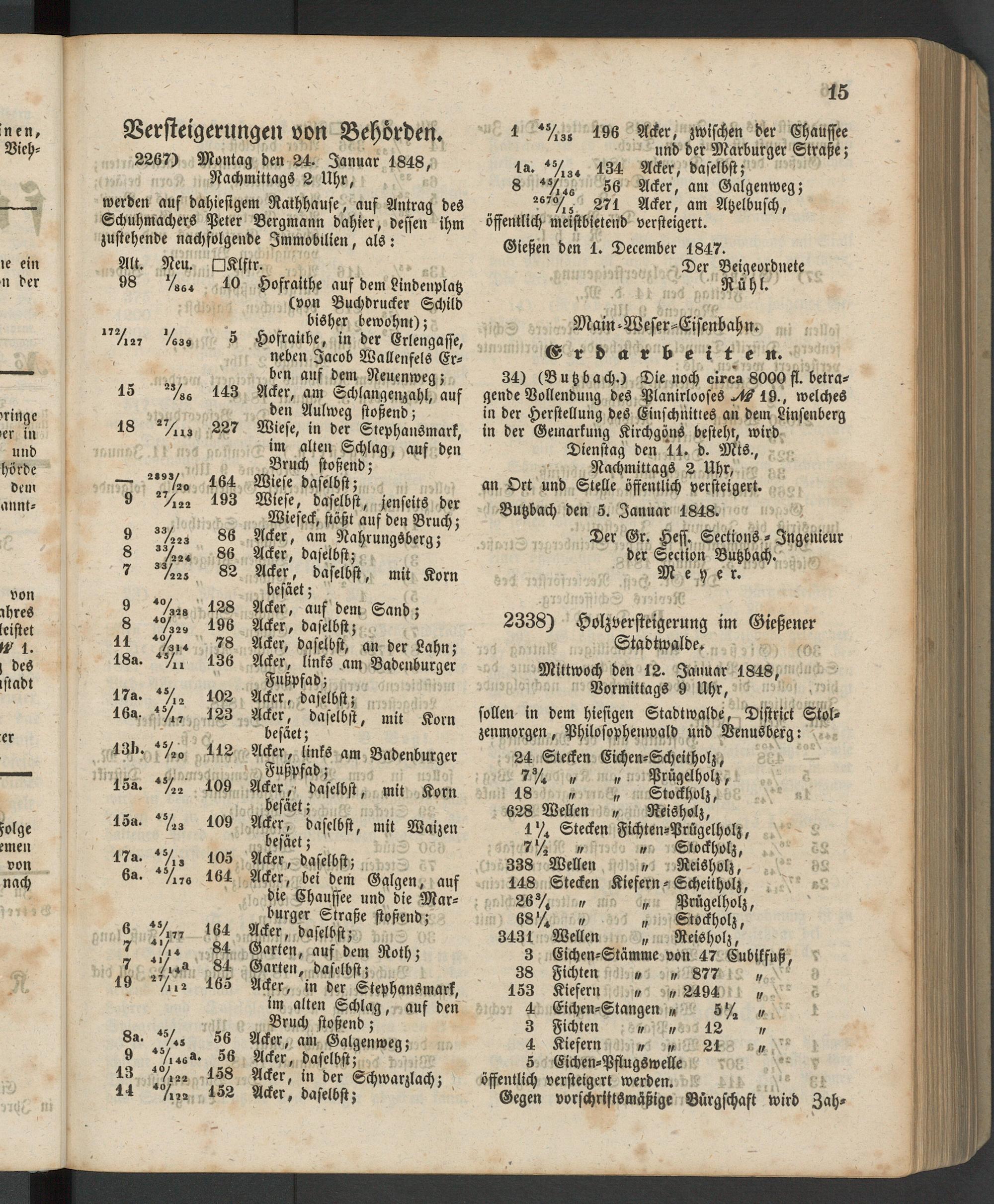 Versteigerungen von Behörden. 2267) Montag den 24. Januar 1848, Nachmittags 2 Uhr,