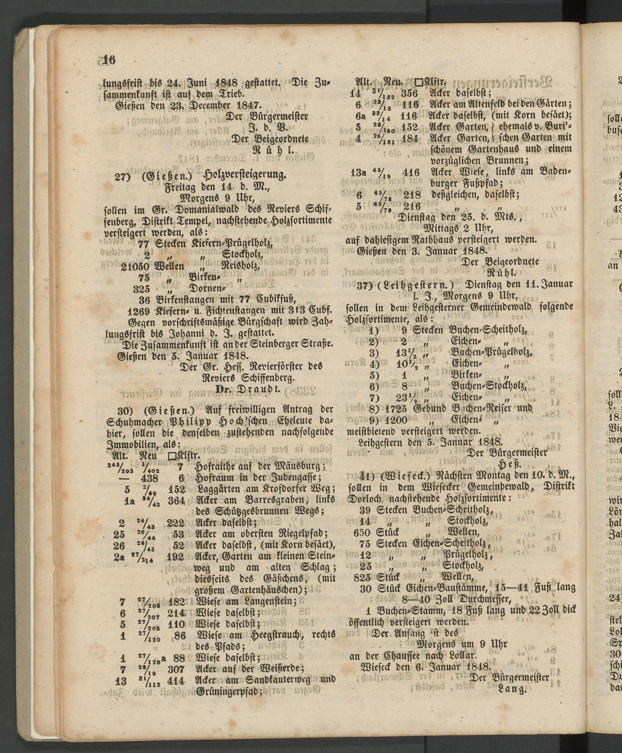 30) (Gießen.) Auf freiwilligen Antrag der Schuhmacher Philipp Hoch'schen Eheleute dahier, sollen die denselben zustehenden nachfolgende Immobilien, als:
