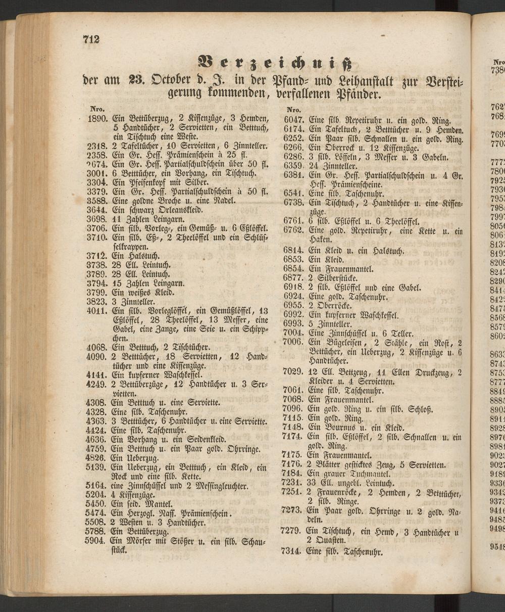 der am 23. October d. I. in der Pfand- und Leihanstalt zur Versteigerung kommenden, verfallenen Pfänder.