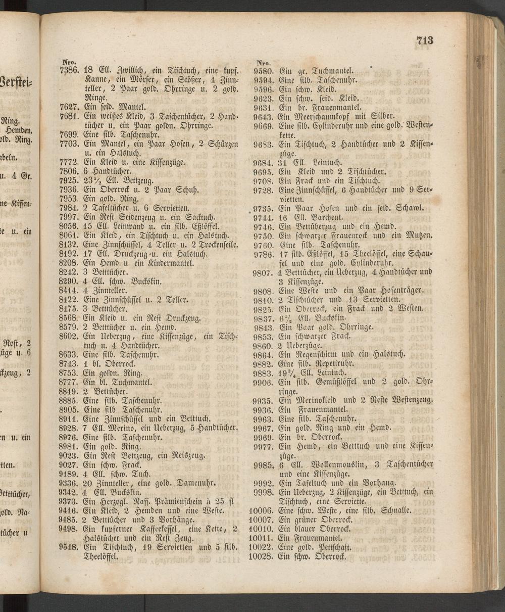 7681. Ein weißes Kleid, 3 Taschentücher, 2 Handtücher u. ein Paar goldn. Ohrringe.