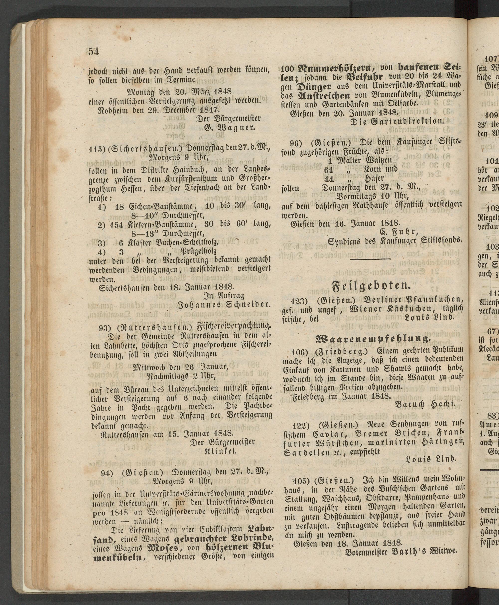 Montag den 20. März 1848 einer öffentlichen Versteigerung ausgesetzt werden. Rodheim den 29. December 1847.
