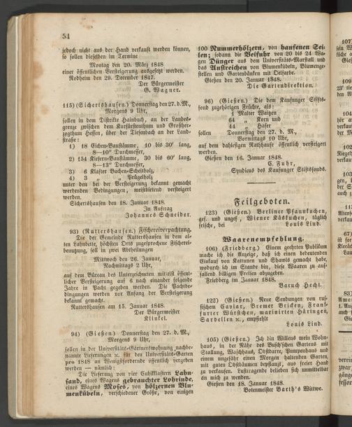 94) (Gießen.) Donnerstag den 27. d. M., Morgens 9 Uhr,