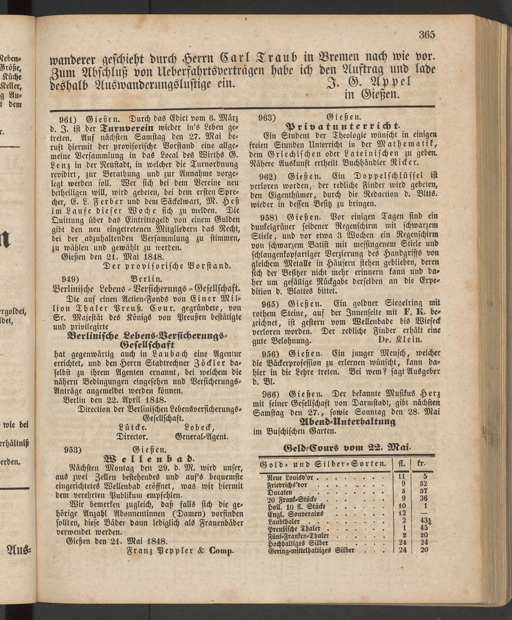 Gießen den'21. Mai 1848.