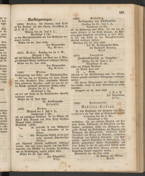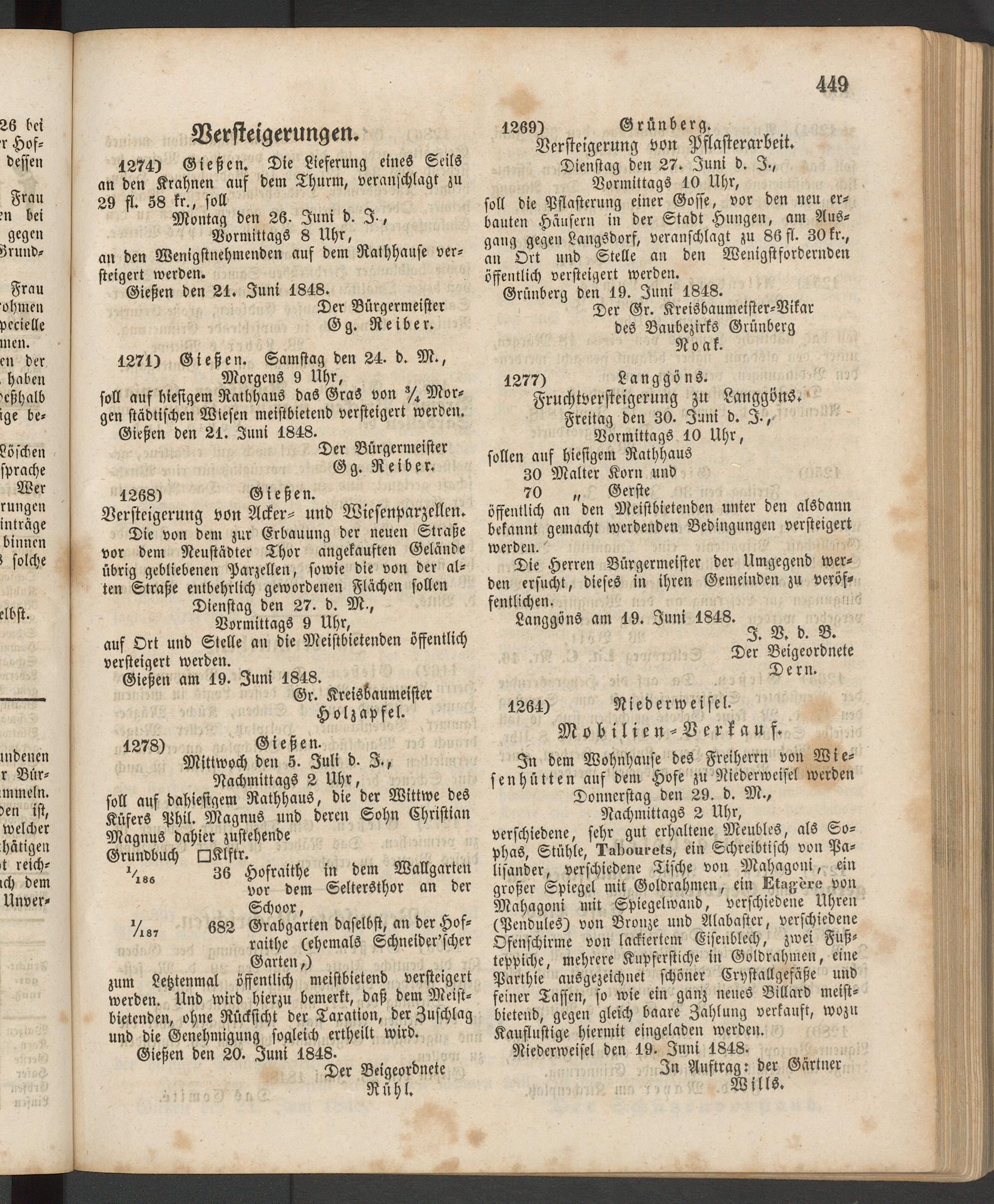 1271) Gießen. Samstag den 24. d. M., Morgens 9 Uhr,