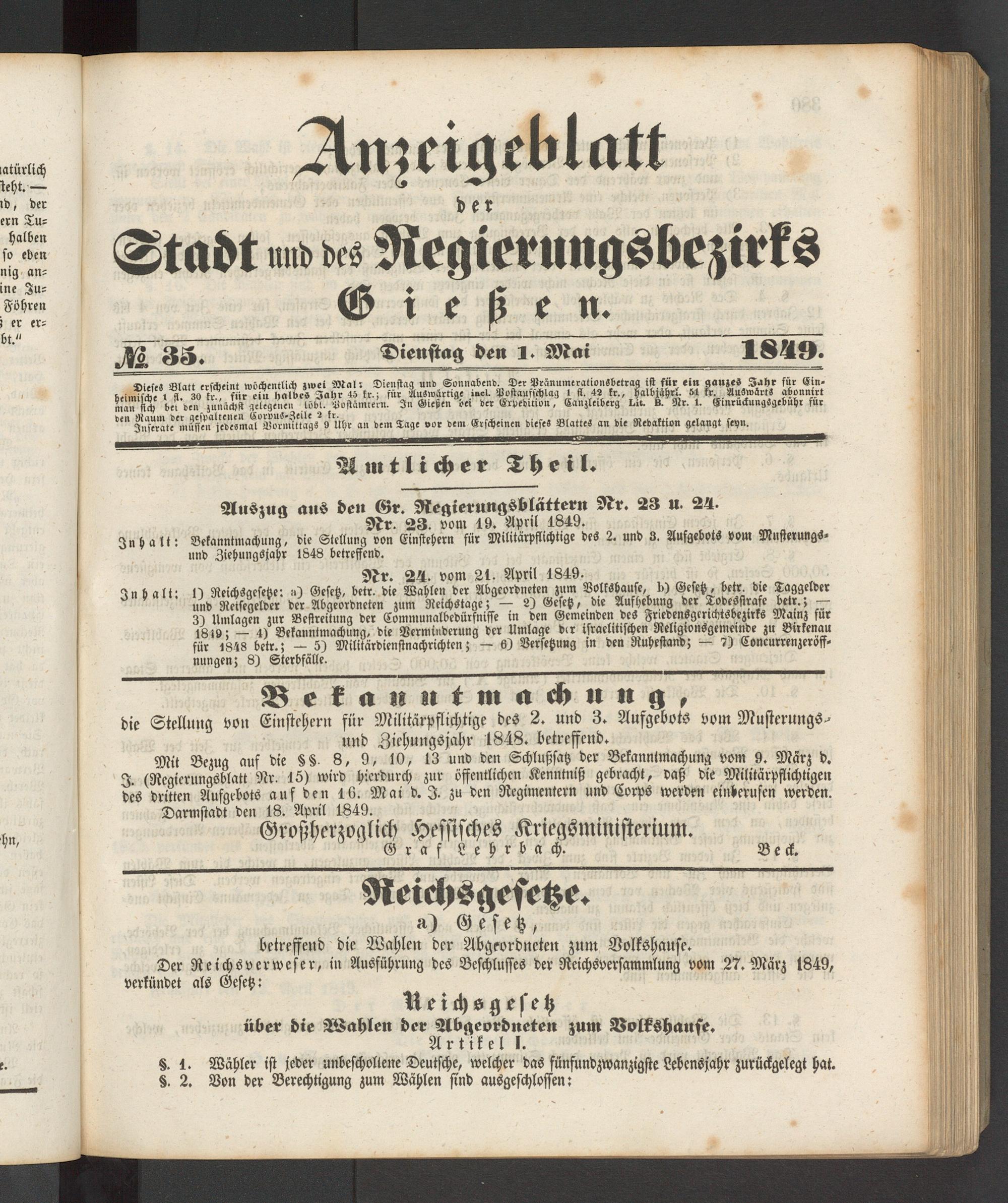Nr 23. vom 19. April 1849.