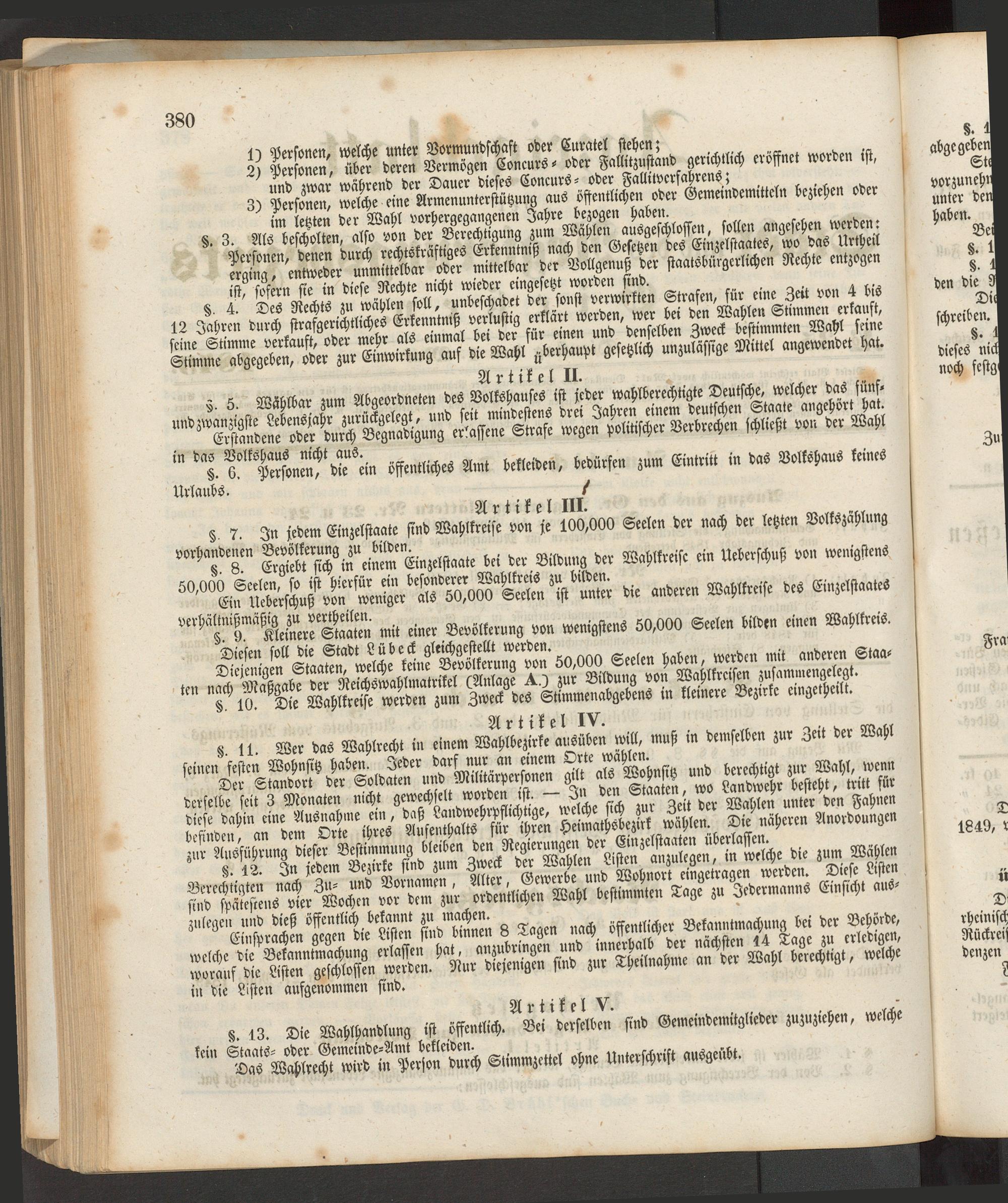 «11 Wer das Wahlrecht in einem Wahlbezirke ausüben will, muß in demselben zur Zeit der Wahl