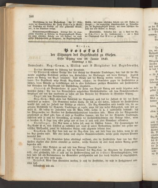 Anwesend r Reg.-Comm. v. Willich und 9 Mitglieder des Bezirksraths.