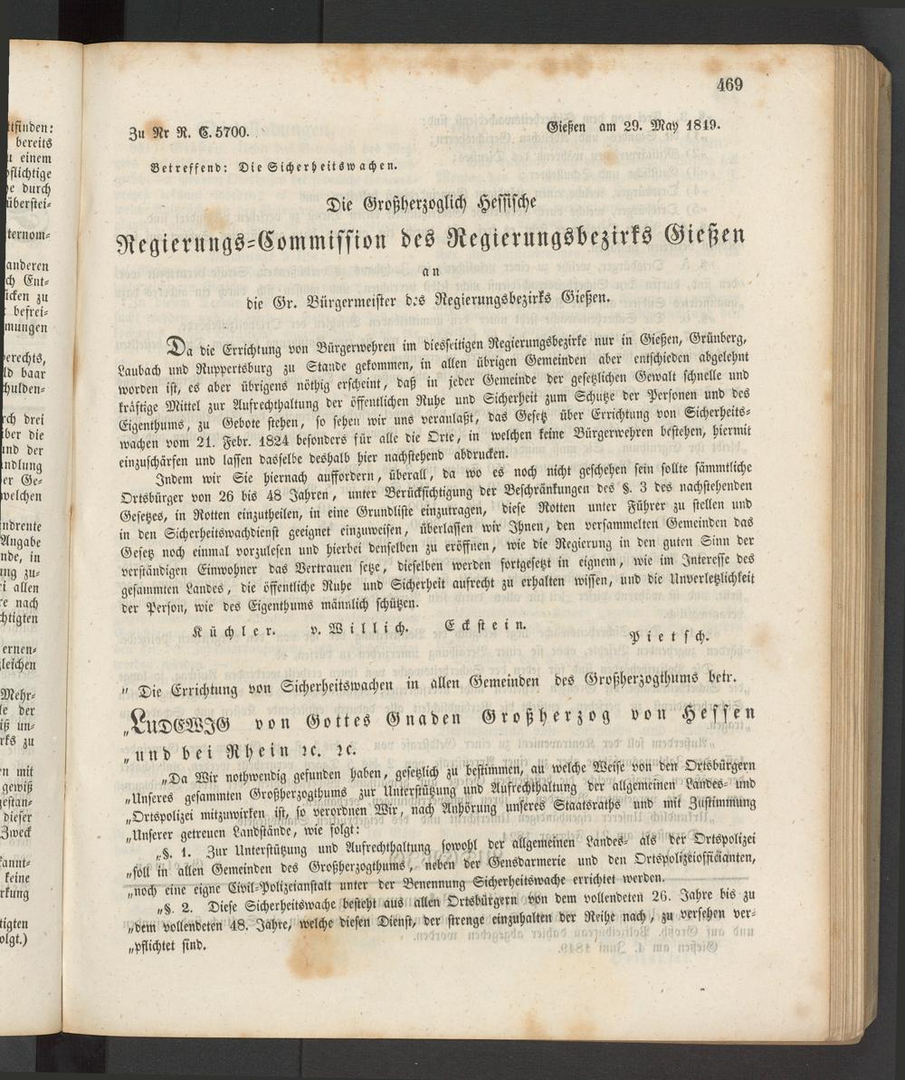 Da die Errichtung von Bürgerwehren im diesseitigen Regierungsbezirke nur in Gießen, Grünberg, *. S5ÄÄ SÄ!
