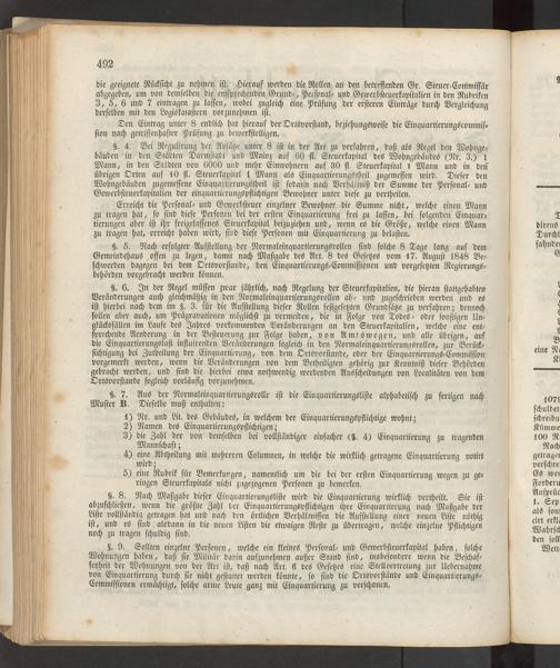 § . 5. Nach erfolgter Aufstellung der Normaleinquartierungsrotten sind solche 8 Tage lang auf dem Gemeindehaus offen zu legen, damit nach Maßgabe des Art. 8 des Gesetzes vom 17. August 1848 Beschwerden dagegen bei dem Ortsvorstande, den Einquartierungs-Commissionen und vorgesetzten Regierungsbehörden vorgebracht werden können.