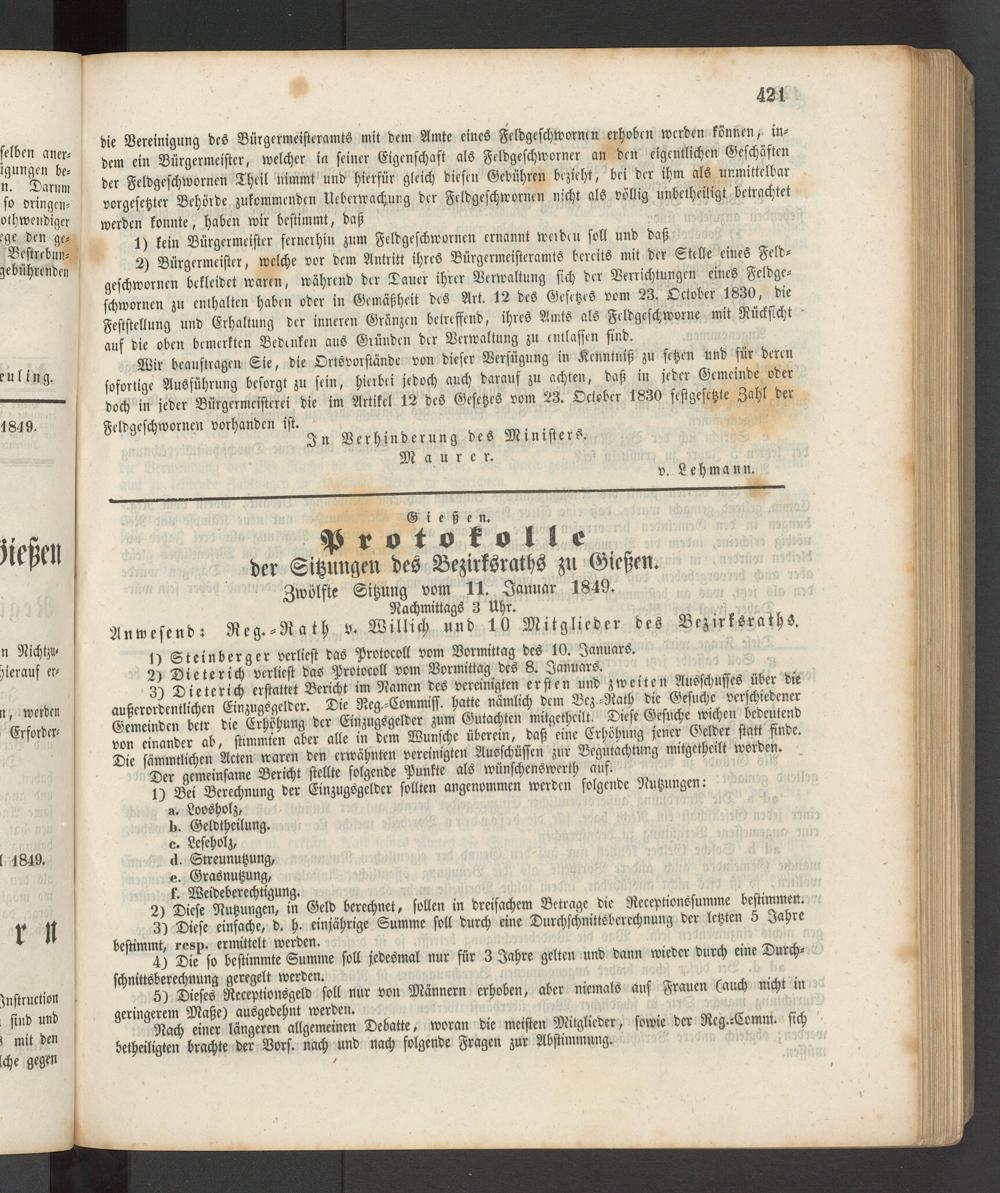 Anwesend; Reg.-Rath v. Millich und 10 Mitglieder des Bezirksraths.