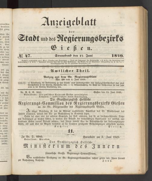 Nr. R. C. G. 5841. Gießen den 13. Juni 1849.