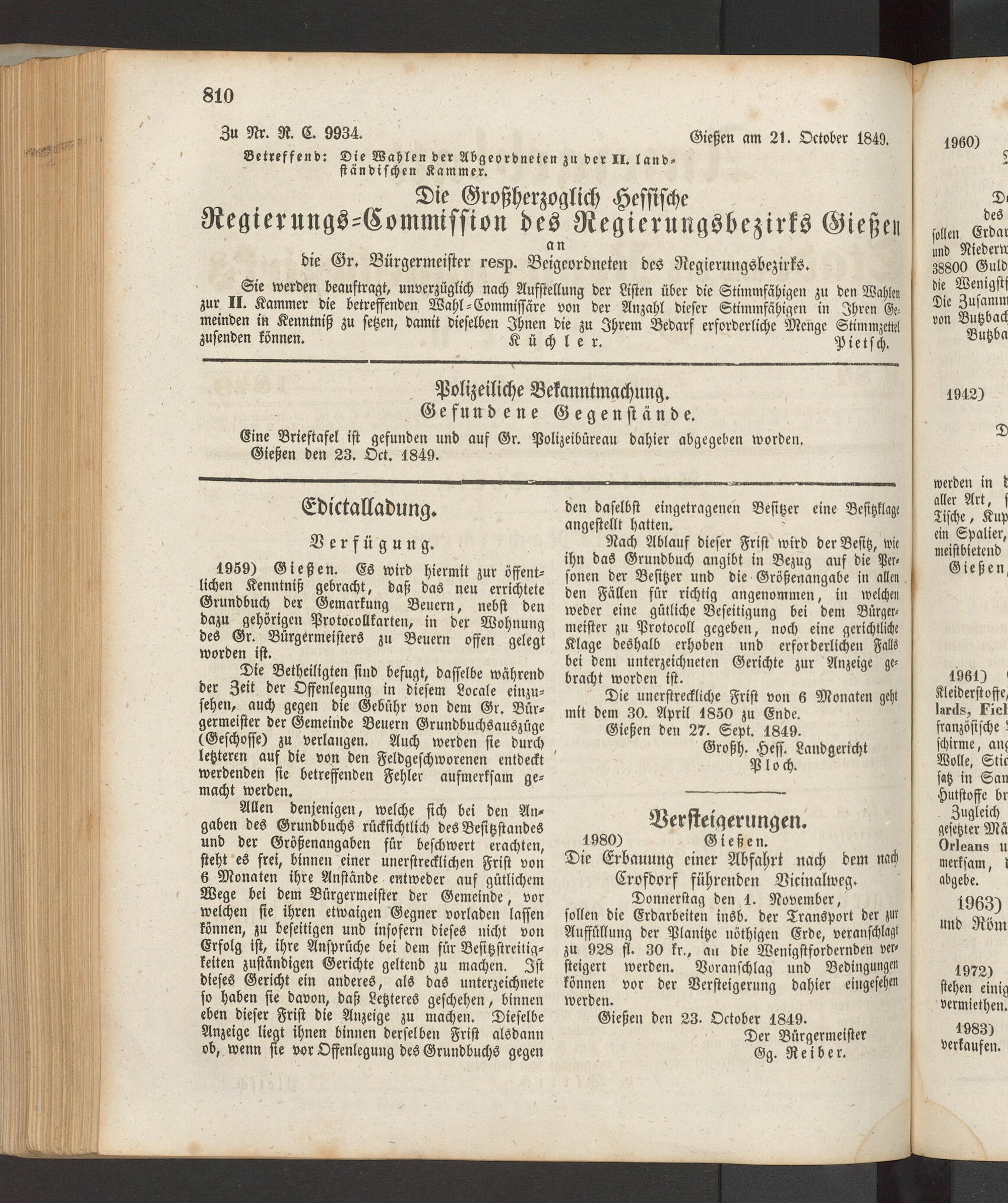 3tf Nr. R. C. 9934. Gießen am 21. Octvber 1849.