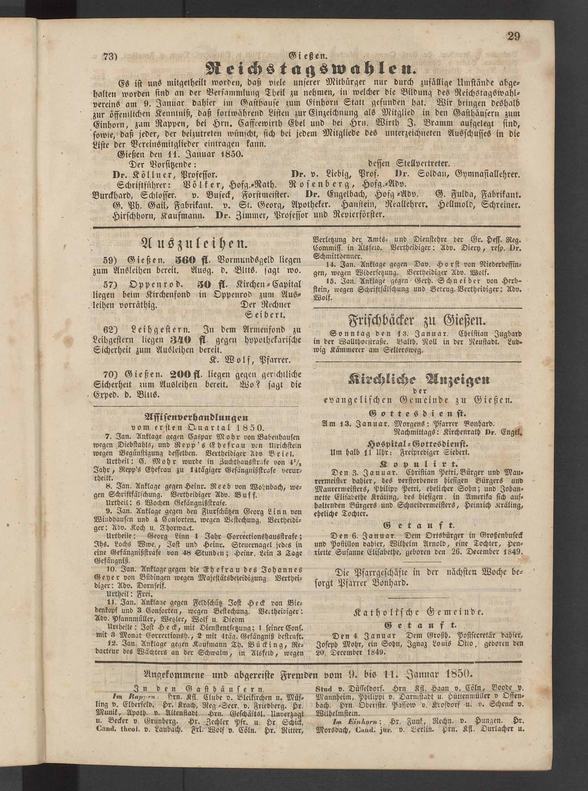 Gießen den 11. Januar 1850.