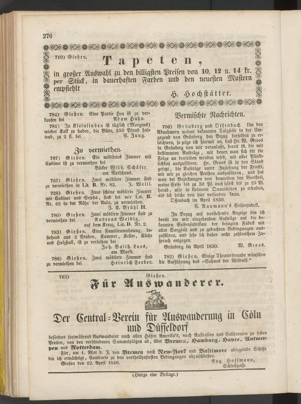 Der Centtal-Verein für Auswanderung in Cöln und Düsseldorf