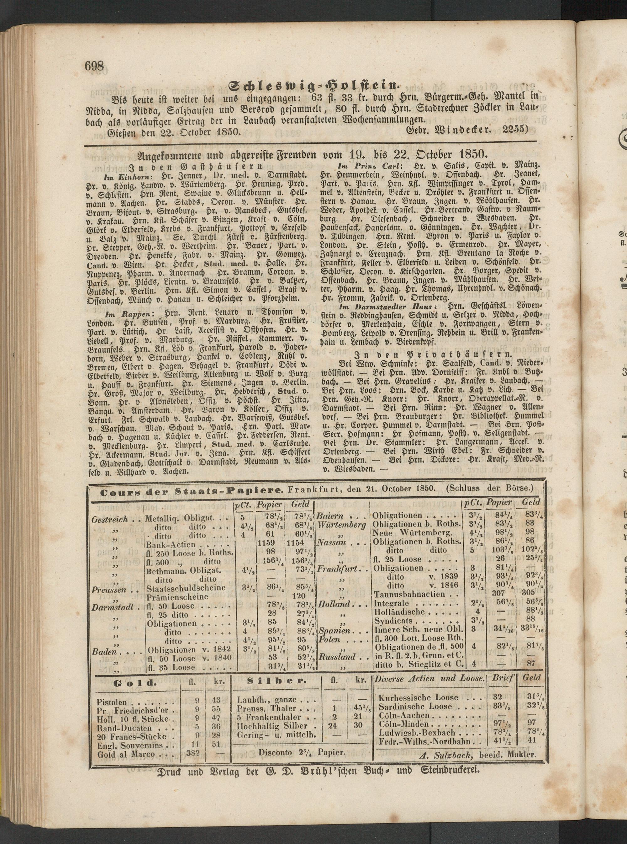 Gießen den 22. October 1850. Gebr. Windecker. 2255)
