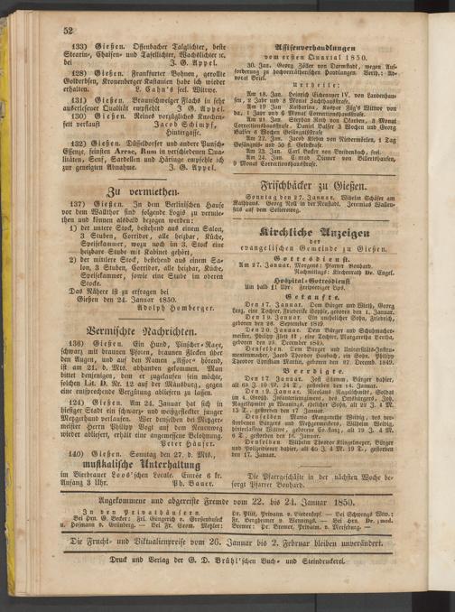 Das Nähere ist zu erfragen bei Gießen den 24. Januar 1850.