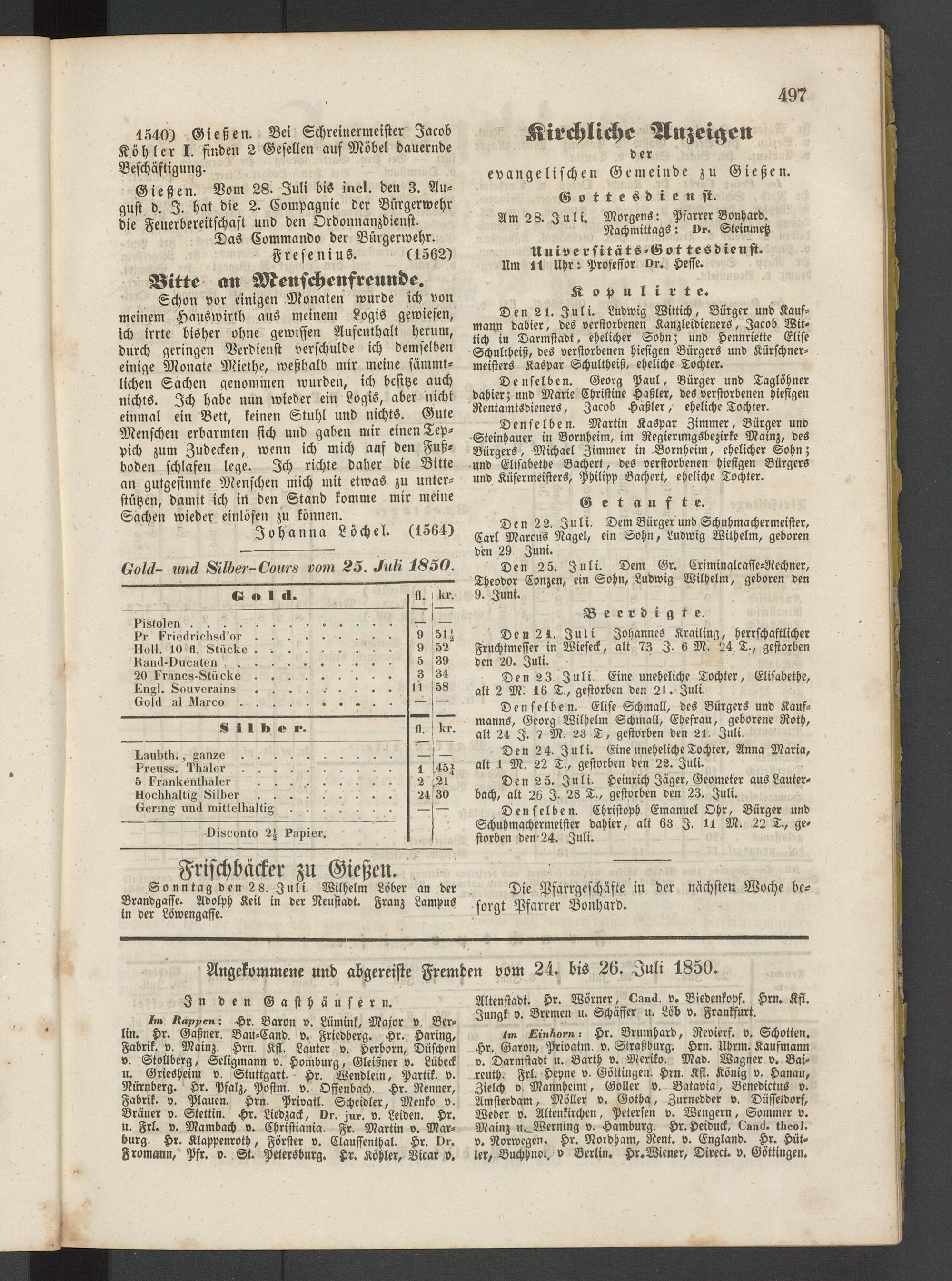Gold- und Silber-Cours vom 25. Juli 1850.