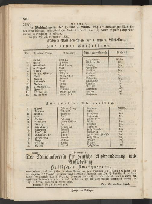 Darmstadt den 25. October 1850. Der Beremsvorstand.