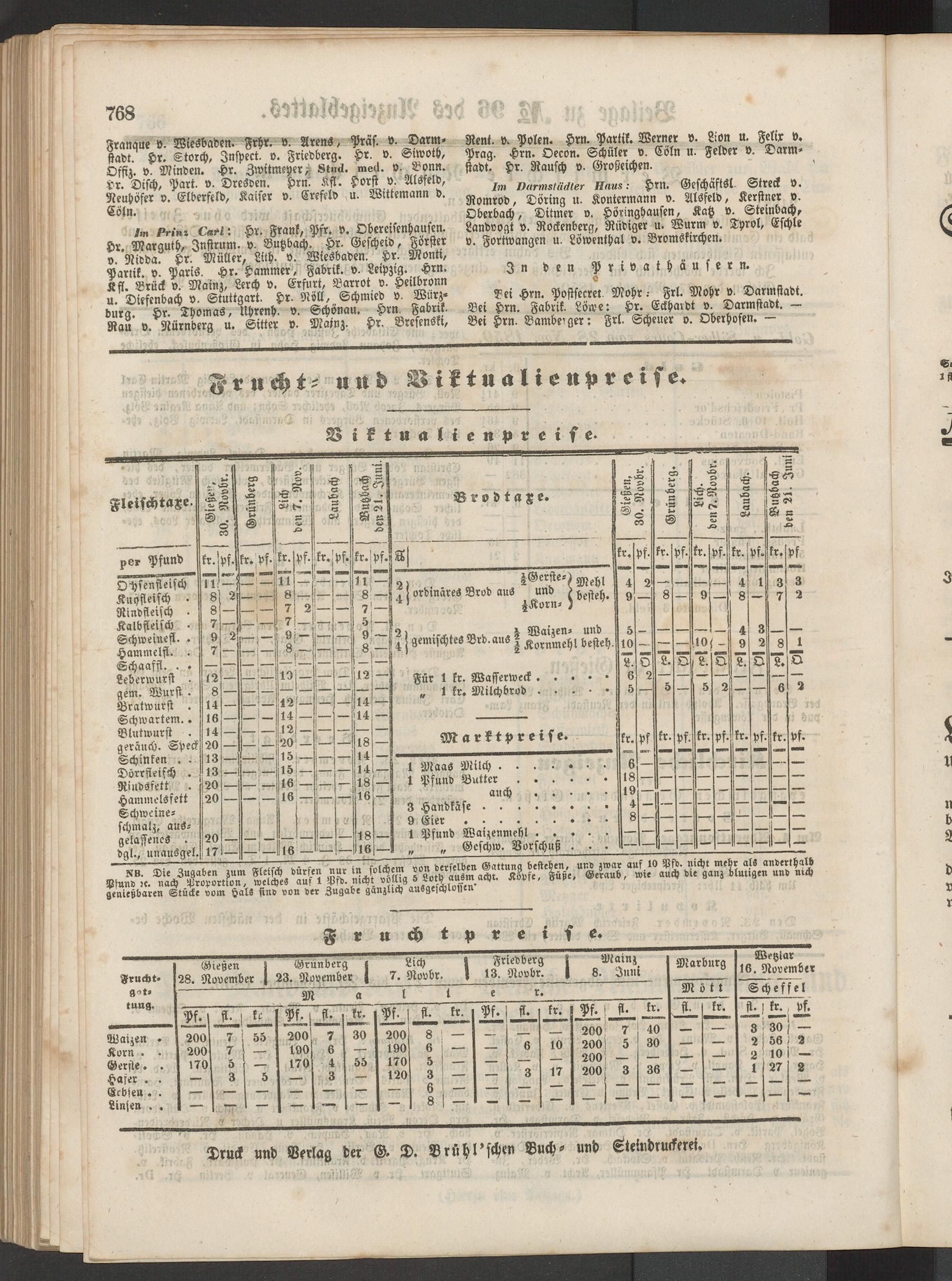 Im Darmstädter Haus: HkN. Geschäfts! Streck v. Romrod, Döring u. Kontcrmann v. Alsfeld, Kerstncr v. Oberbach, Ditmer v. Höringhausen, Katz v. Steinbach, Landvogt v. Rockenberg, Rüdiger u. Wurm v. Throl, Eschle v. Fortwangen u. Löwenthal v. Bromskirchen.