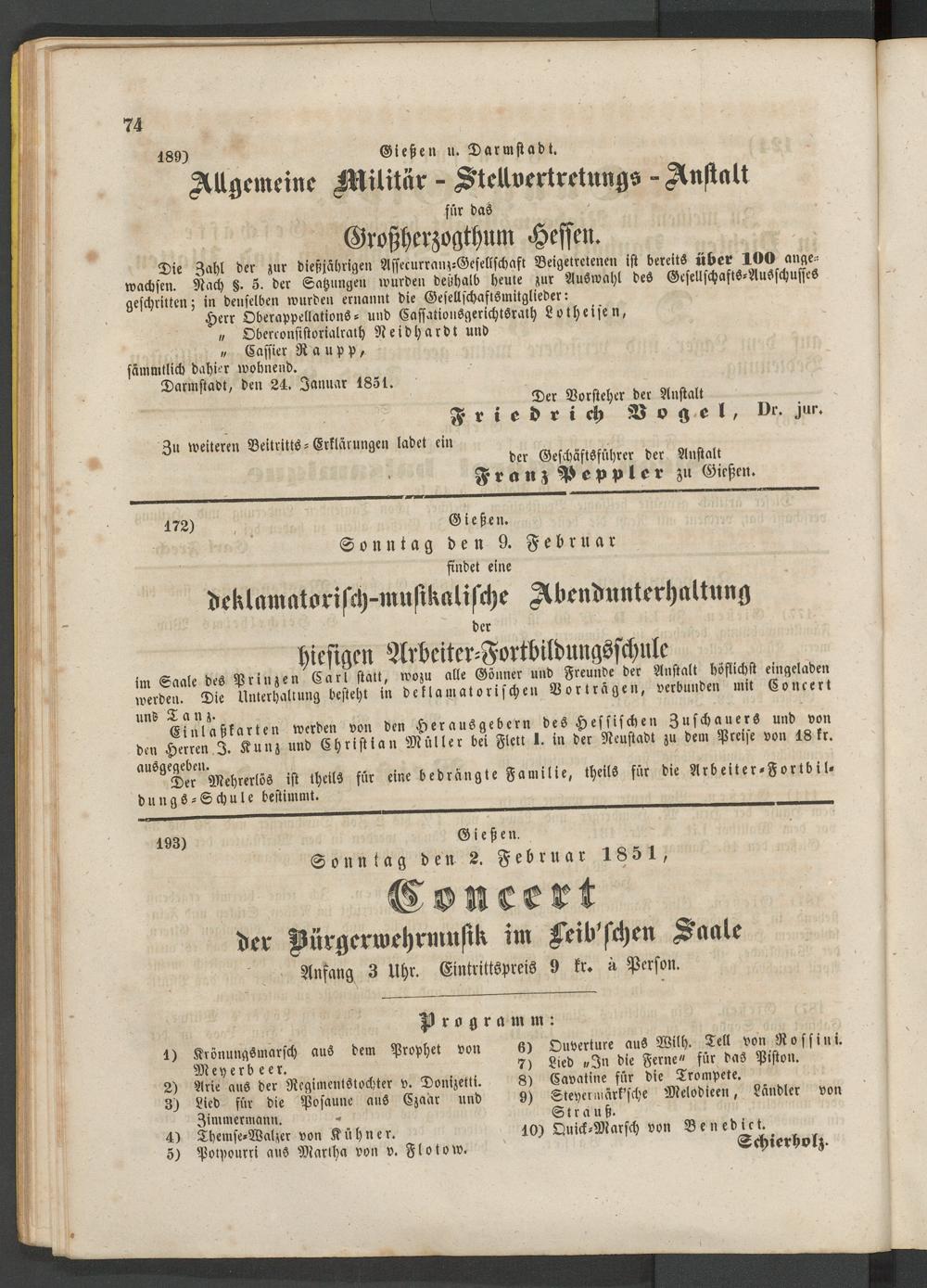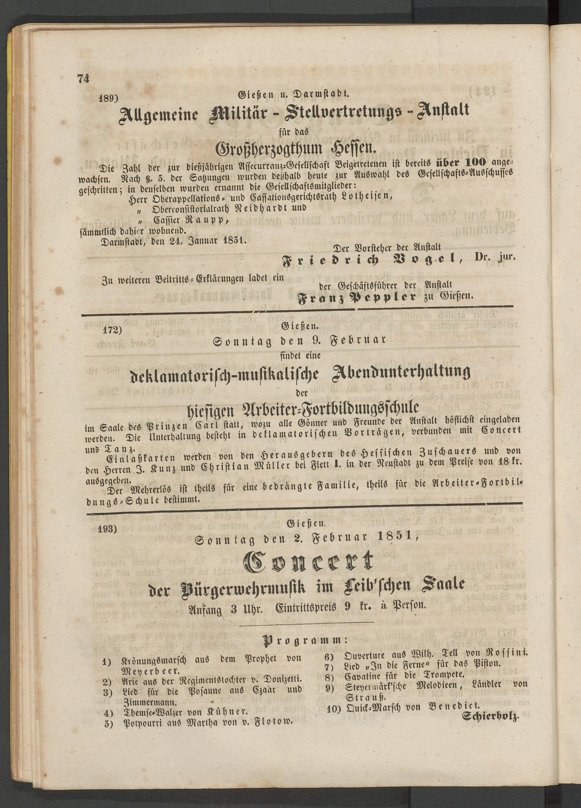 Darmstadt, den 24. Januar 1851.