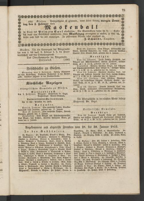 Angekommene und abgereiste Fremden vom 28. bis 30. Januar 1851.