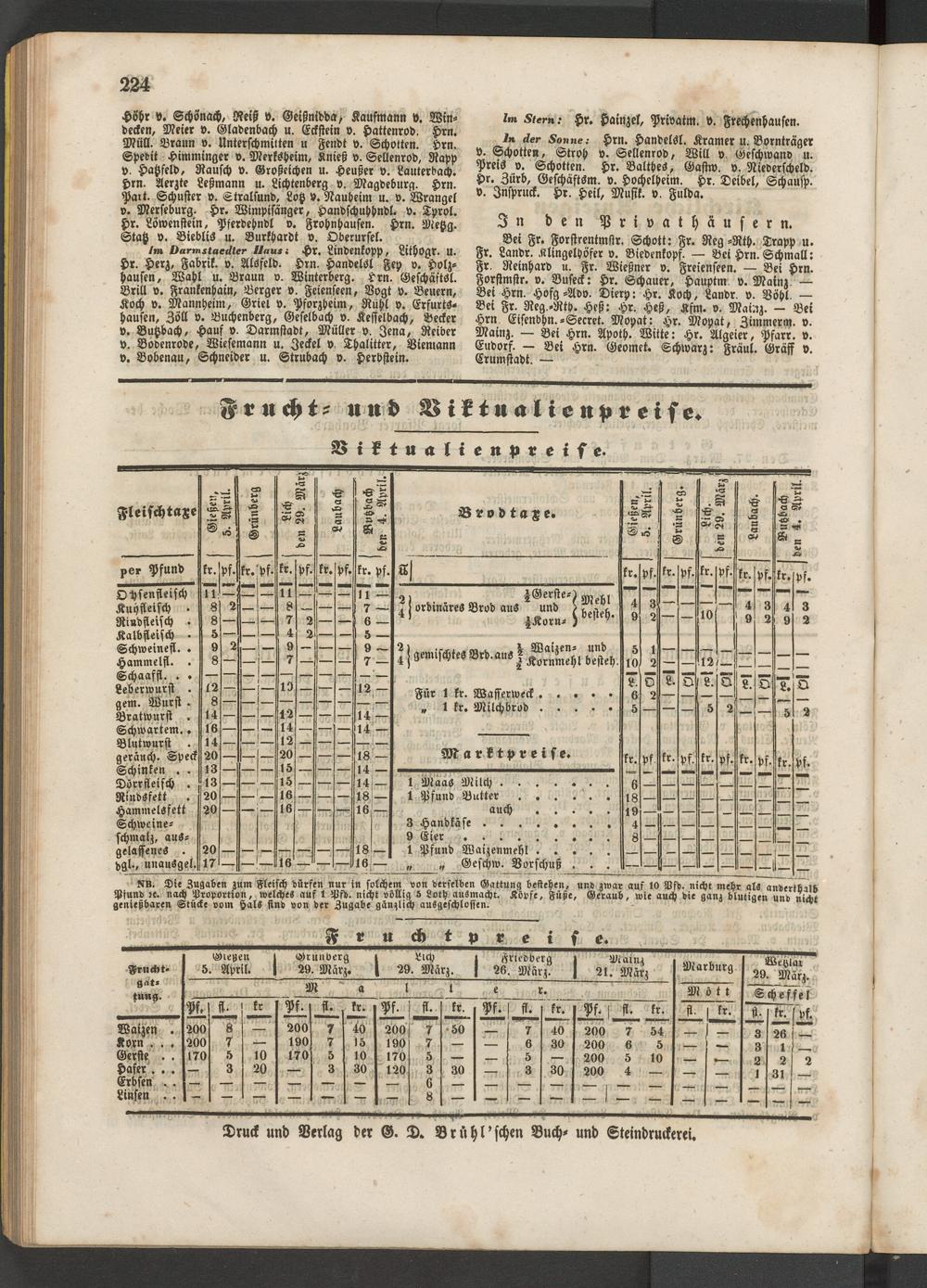 Im Darmstaedter Haust Hr. Lindenkopp, Lithvgr. U. Hr. Herz, Fabrik, v. Alsfeld. Hrn. Handelst Feh v. Holzhausen, Wahl u. Braun v. Winterbcrg. Hrn. Geschähst. Brill v. Frankenhain, Berger v. Feicnsecn, Vogt v. Beuern, Koch v. Mannheim, Griet v. Pforzheim, Rühl v. Erfurtshausen, Zöll v. Buchenberg, Geselbach v. Keffelbach, Becker v. Butzbach, Häuf v. Darmstadt, Müller v. Jena, Reiber v. Bodenrode, Wiesemann u. Zeckel v. Thalitter, Viemann v. Bobenau, Schneider u. Strubach v. Herbstein.