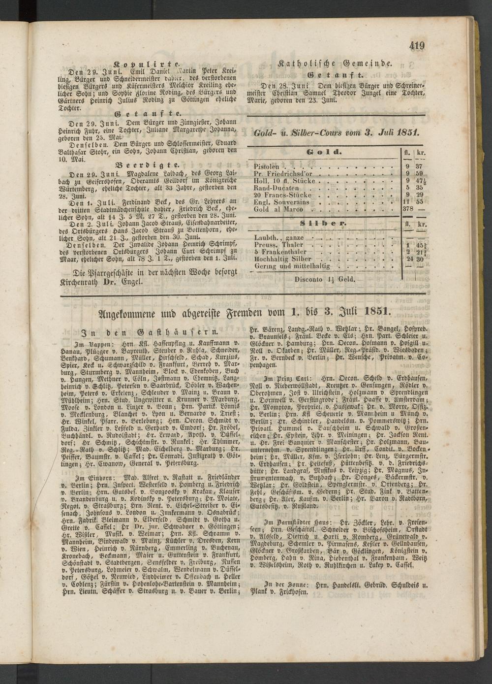Gold- u. Silber-Cours vom 3. Juli 1851.