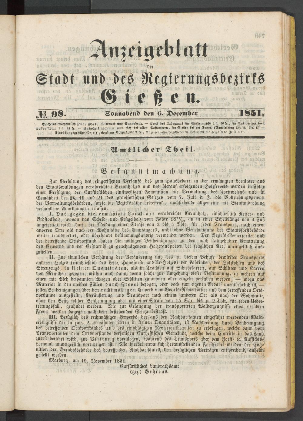 Marburg, am 19. November 1851.