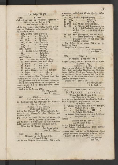 öffentlich unter den bei der Versteigerung bekannt gemacht werdenden Bedingungen versteigert werden. Großenbuseck den 6. Februar 1851.